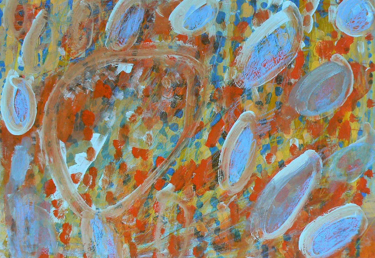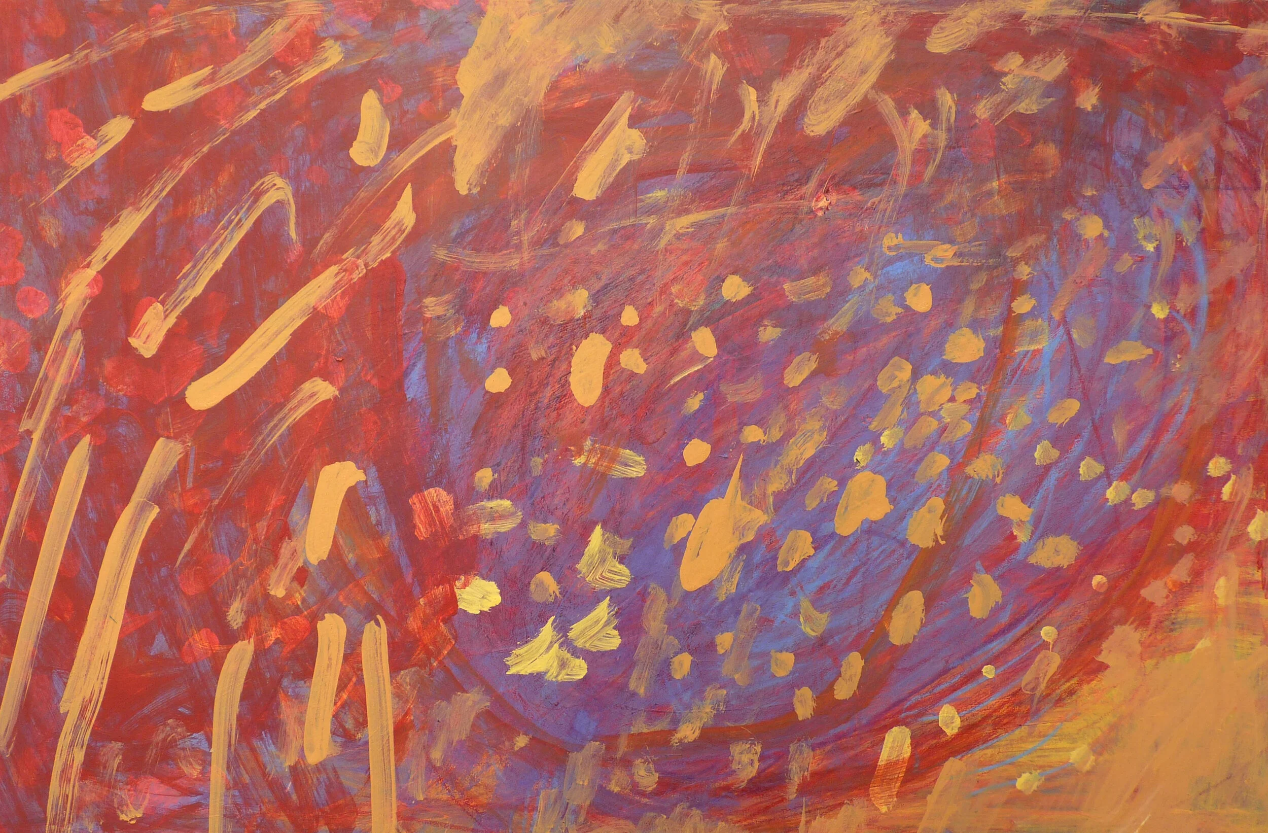 John creates colourful, multi-layered abstract paintings adding structure through the use of a repeated selection of motifs. Glimpses of underlying marks are revealed to hint at hidden depths and time passed. Being on the autism spectrum gives John a heightened experience of colour. Whether the marks are energetic or still, each piece creates a space for a meditative moment. His work provokes questions of how colour affects us.