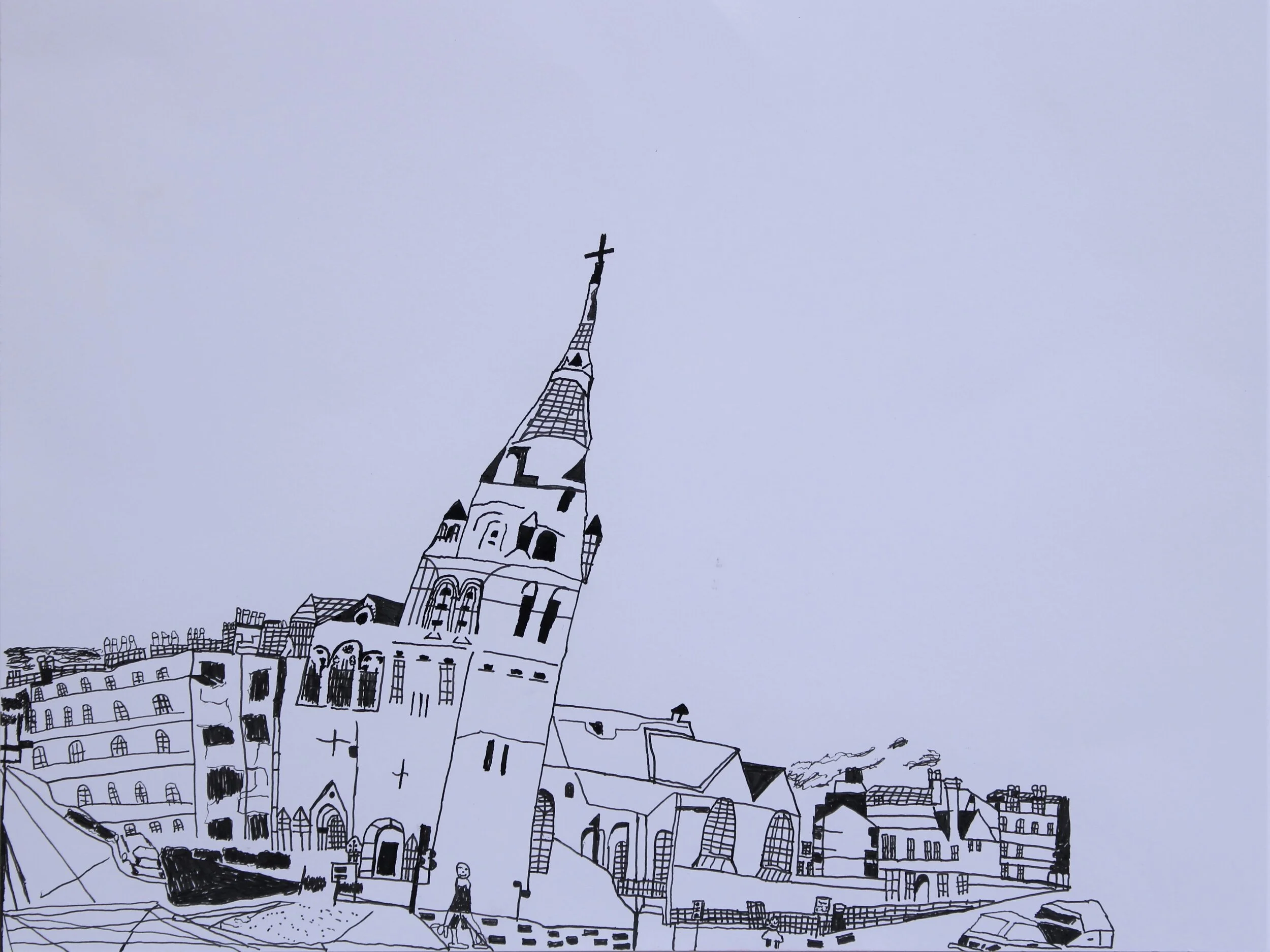 “I like Edinburgh, it’s my favourite landscape—I like the monuments—I like to use smaller and bigger pens for the darker line. My technique is fantastic.”